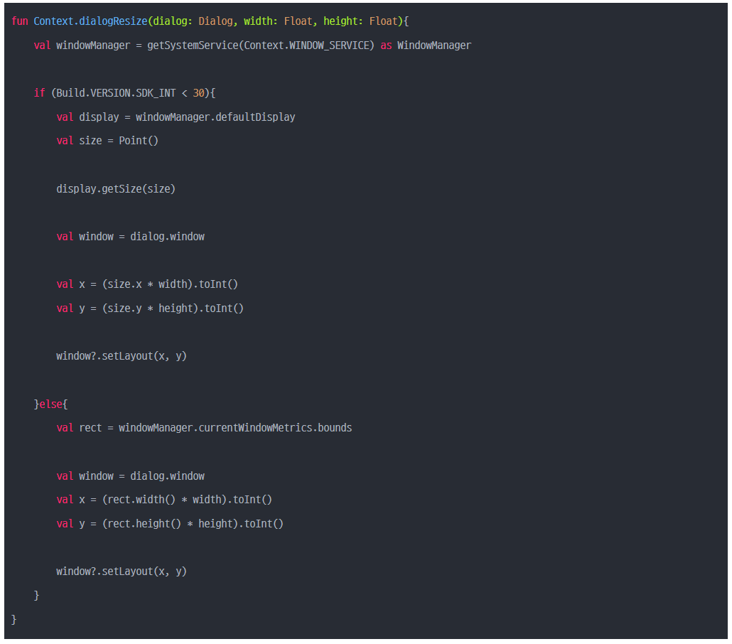 다이얼로그의 크기를 임의로 조절할 수 있다.