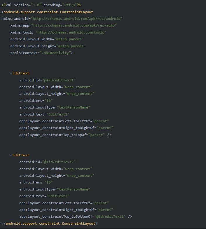Listener1 클래스는 EditText1에 등록되는 리스너로 뒤로가기키를 눌렀다 뗐을 때 Toast 메시지를 띄워주고 false 값을 리턴하여 해당 EditText에 포커스 된 상태에서 뒤로 가기를 누르면 Toast 메시지를 띄우고 시스템이 기존에 가지는 뒤로 가기 이벤트도 처리를 하겠다는 것을 의미한다.