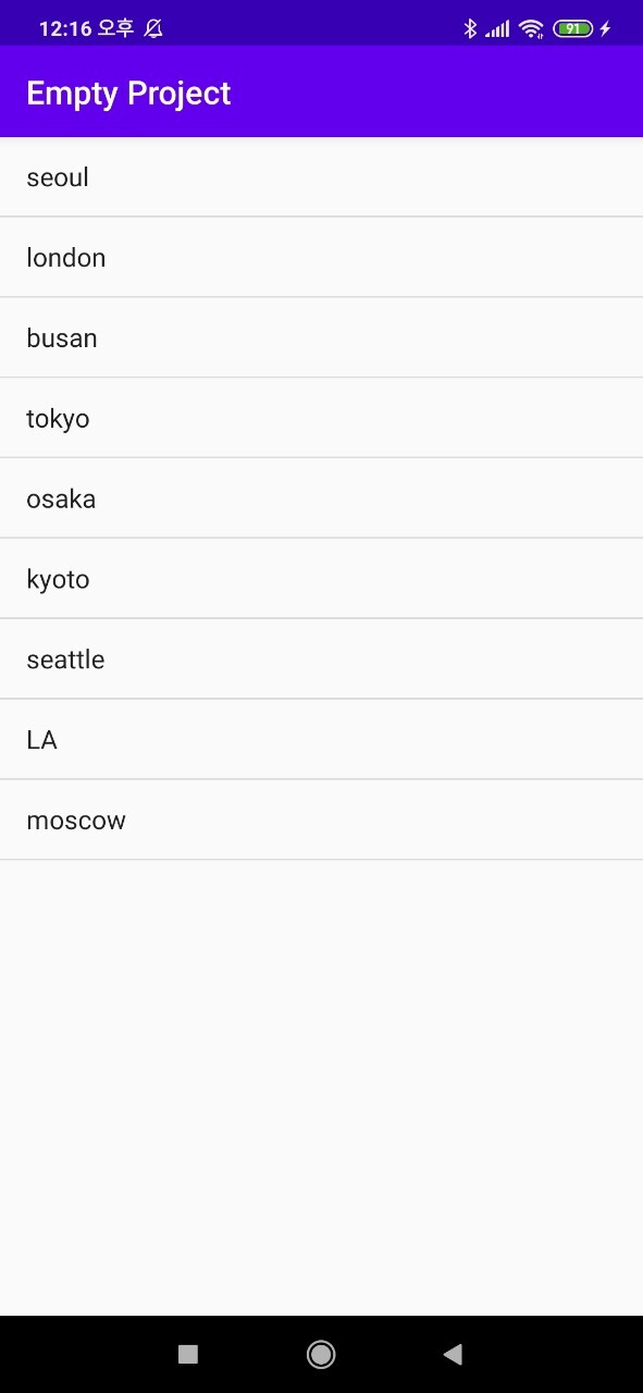 여기까지만 작성하고 실행해보시면 이렇게 리스트뷰를 확인하실 수 있다.