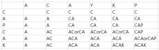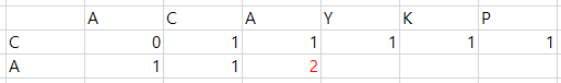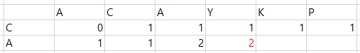 6행2열에서는 서로 일치하지 않으므로 CAPCA와 AC로 만들 수 있었던 최장공통부분수열인 위에 있던 AC를 그대로 가져온다.