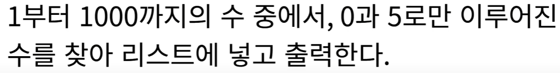 for (int i = 5; i <= 1000; i+=5) # 5에서 1000까지 5만큼 증가 (모든 수를 검사할 필요가 없음)