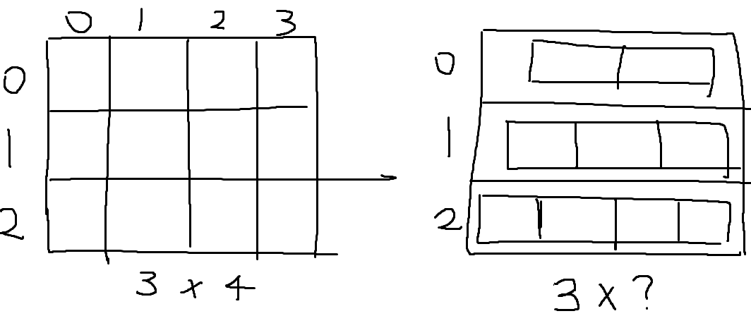 a = new int[3][]; #행이 3인 2차원 int 배열 생성후 a에 집어넣음