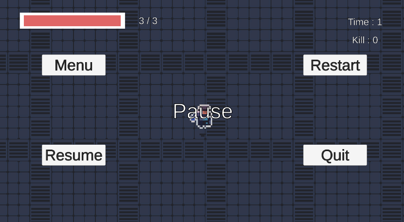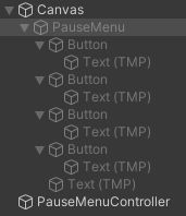 캔버스 screen space - overlay로 하나 만든 후 아래에 PauseMenu 아래에 버튼과 텍스트를 구현했다.